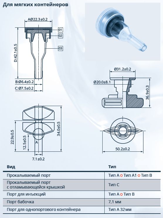 3.2 Прокалываемый порт с отламывающейся крышечкой;